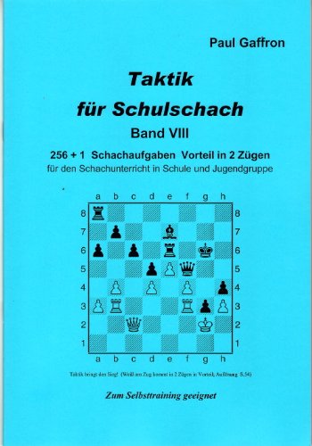 Beschreibungen Taktik für Schulschach, Band 8: 256 + 1 Schachaufgaben Vorteil in 2 Zügen für den Schachunterricht in Schule und Jugendgruppe Kostenlos Online256 + 1 Schachuafgaben - Vorteil in 2 Uügen für den Schachunterricht in Schule und Jugendgruppe - zum Selbststudium geeeignet